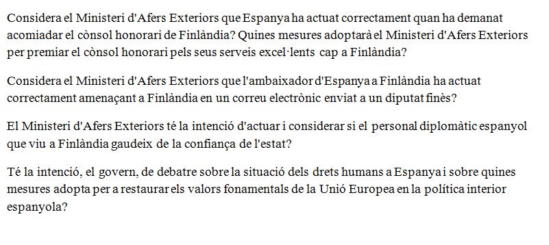 A continuación, las preguntas literales que ha presentado Kärnä: